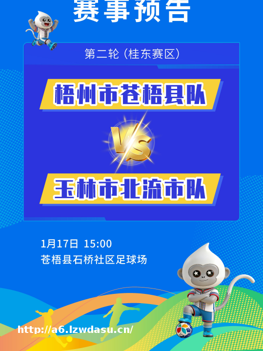 1月17日15时,梧州市苍梧县队带着“千年古郡”的底蕴而来,球员们兼具韧与默契,主场作战必当全力以赴捍卫荣誉;玉林市北流市队则承载着“陶瓷之都”的拼搏精神,首轮历练后更显锋芒,此番客场出征势要争取胜利。