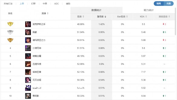 但大多数人最后都放弃了,很多人还加入了用狗头“摆烂”的大军,狗头的登场率仅次于诺手、腕豪和盖伦,胜率还比诺手和盖伦更高。