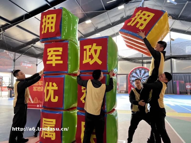另一边,“军民同心塔”项目正赛得火热。现役军人组成的武德卫队与退役军人二战队同台PK,需要把8个写有“拥军优属拥政爱民”的充气积木按序叠放,保持10秒钟不倒才算胜利。这可并非易事,每个充气积木都有半人高,搭到**处,一个成年人跳起来都够不着。于是,新老队伍各出奇招。年轻的武德卫队体能强、活力旺,彼此托举,通过改换叠放的先后步骤,掌握了搭积木的诀窍。