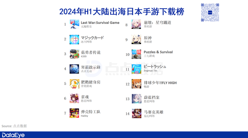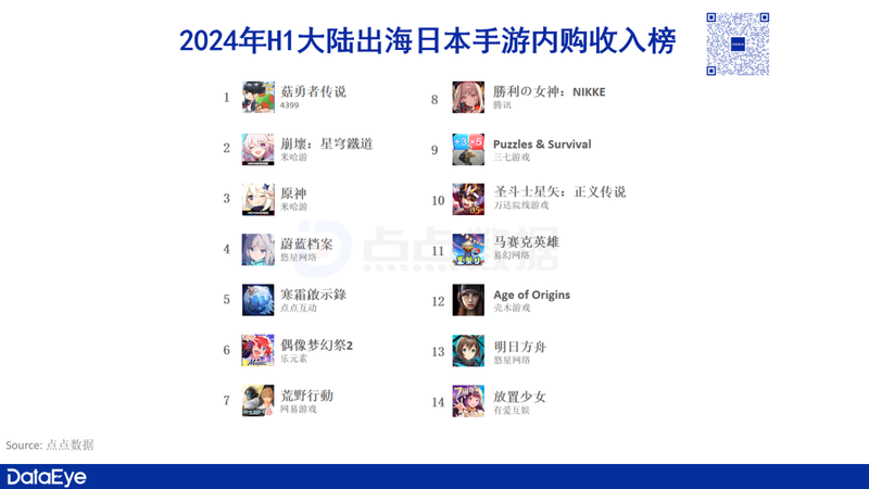 除了榜单**的数款新游外,老游戏《雀魂》《原神》等仍能排在**。**整体“换血”的速度较慢。