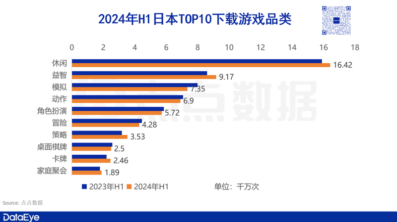 整个**市场在品类收入整体上与去年同期相比呈现出较为稳定的态势。在*** 10中增长**的是休闲品类,在2024年H1实现了9.44%的增长。其次是冒险类的5.3%和益智类的3.6%。在热门品类固化的**市场,也有更多以中国厂商为代表的开发者尝试用更多轻量产品来打开该市场。