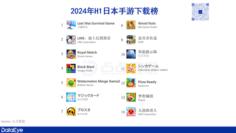 ***14均为带有休闲属*的作品。其中元趣**休闲副玩法+SLG的《Last War:Survival Game》以“轻包重”的模式,三款消除游戏分列2-4位,“合成大西瓜”玩法的《Watermelon Merge Game2》位居第5。