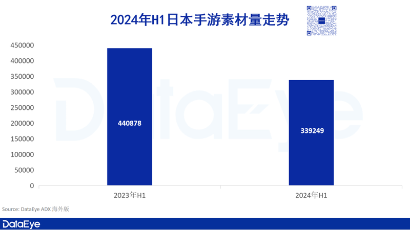**市场在2024年上半年共投放手游素材量超过33.9万(视频+图片,去重),这与去年同比减少了23.6%。海外所有市场都正在经历投放素材量减少的总趋势,**市场也不例外。