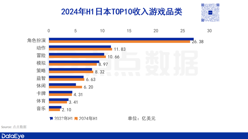 在上半年**市场的***10收入游戏品类中,角色扮演类以压倒*的差距继续担任着该市场最吸金的游戏品类。