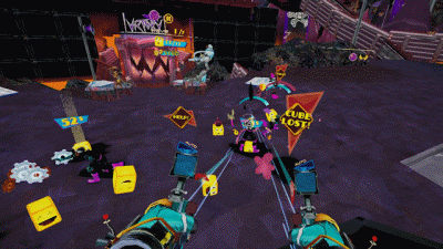 玩家需要乘坐披萨火箭在任务点坐标间穿梭,像科幻版本的《疯狂的麦克斯》,体验四大地点的异域风光:垃圾镇,奥能矿场,科技实验室,朋克兵团基地……每张地图别具一格,让玩家在挑战关卡的过程中感受到赛*废土感扑面而来,伴随VR设备加成,带来身临其境的体验感,宛如漫游星际。