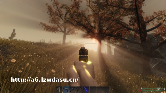 当然,作为一个沙盒求生类的游戏,本作跟其他游戏些许不同的地方在于人物不仅需要水与食物,食物还细分成了肉类与蔬果类,分别称为维生资源存在,让游戏真实度倍增,当然难度也加大不少。而本作**的特色,除了随处可见的资源包之外,大概就是初期时主角的弱鸡程度了。尽管出生时候玩家自带了一把**作为武装,但是这把**除了能打打小鸡小兔,基本也就没别的作用了,哪怕是**的野狗都打得够呛,一不小心就会嗝屁。而初期建造基地的过程,也主要以捡包裹为主...看起来很厉害的、必备的道具,几乎都是从原野之中捡到的,而并非全部合成,甚至还有一些高科技的玩意儿,比如玩家甚至能自己造出**枪。