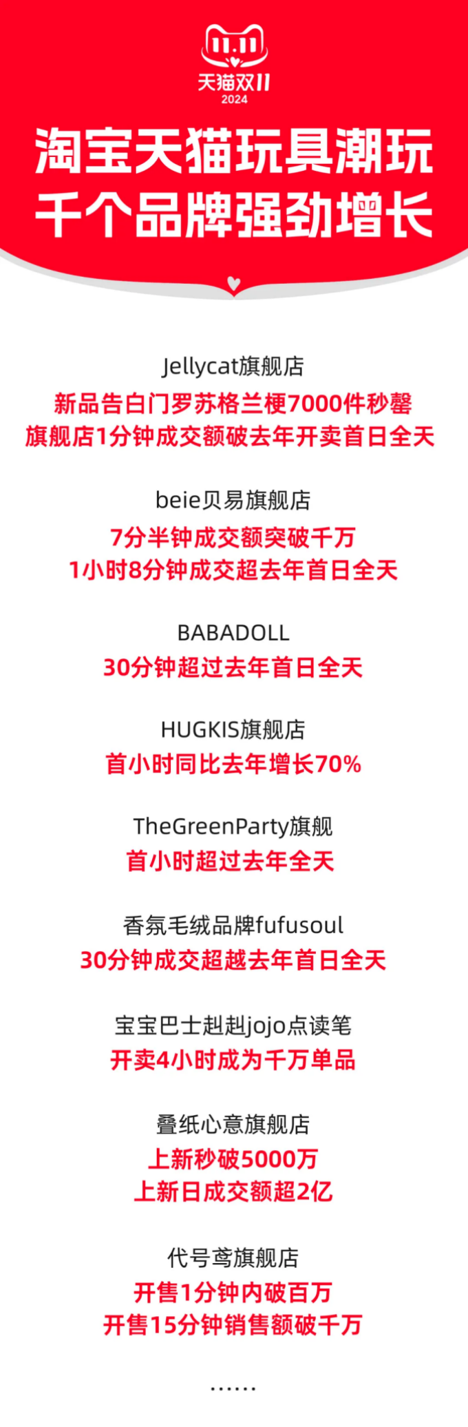 另一方面,公开报道显示,淘天玩具潮玩行业占市场份额超过50%,市面上90%以上的IP都入驻了,同时,今年双11**阶段,天猫玩具潮玩行业的市场份额已经接近70%。这意味着,
