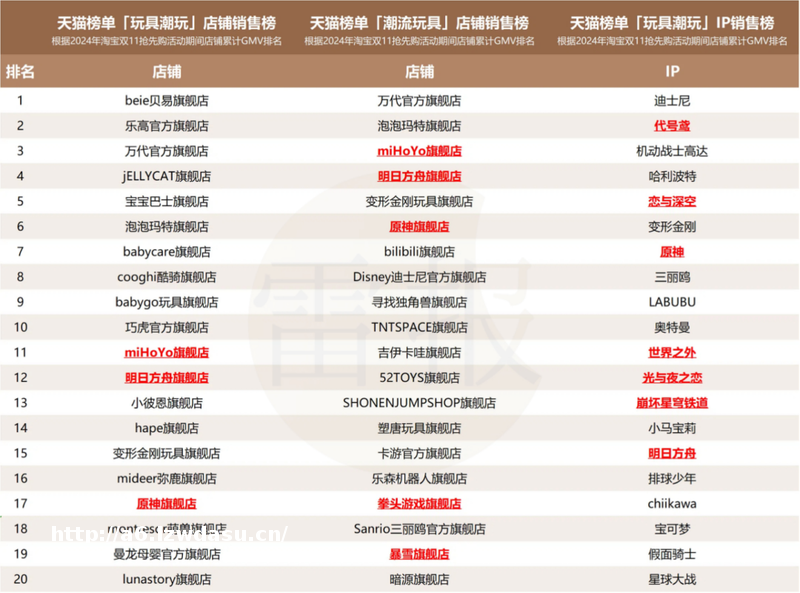 在本篇,雷报将结合天猫的双11战报以及部分游戏公司的财报重点分析,2024年国内的游戏IP衍生品市场发展到什么阶段了?有什么新的趋势?