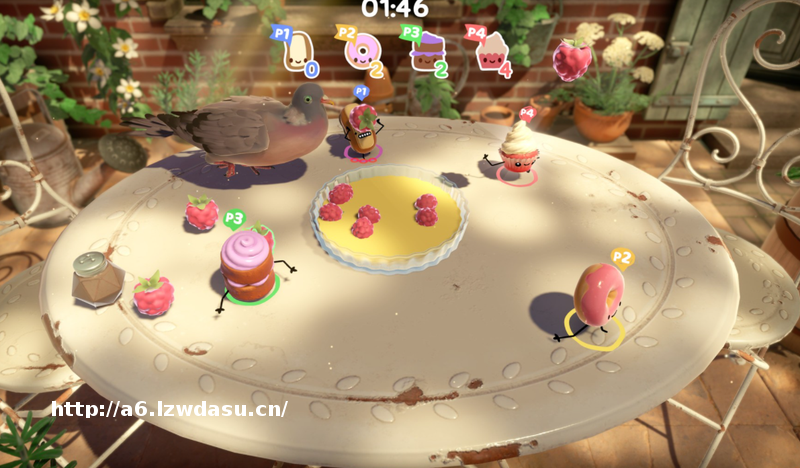 关于游戏的获胜方式。游戏中有包括拾取从天空掉落的小糖果,以及将掉落的草莓、桑葚等水果扔到中间的派饼之上来获得分数。需要注意的是,玩家在获得小糖果之后要小心其他玩家的冲撞攻击,如果被撞到就会掉落已经获得的糖果哦。