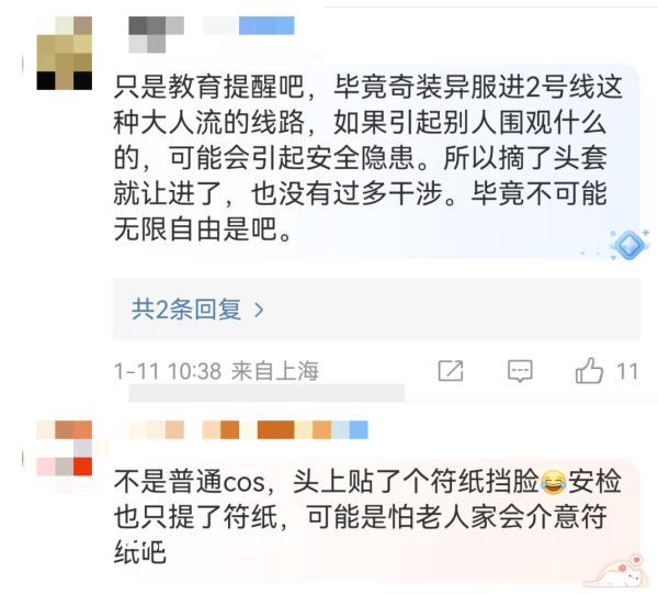 1月16日下午,上海地铁工作人员回应称,上海地铁并未明文规定奇装异服者不能乘坐地铁,但是地铁方呼吁乘客文明乘车,以不妨碍公共安全和公共秩序为前提,避免引起其他乘客聚集和围观,影响现场的乘车秩序。
