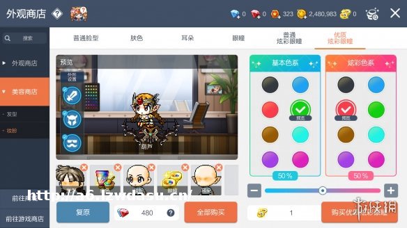 同时,游戏还配备了一个“**商店”,你可以在此更改发型和面容,甚至还能够对这些地方进行调色。