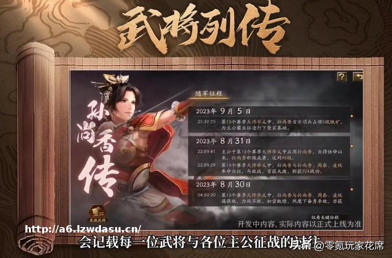 每个武将都有自己的专属列传,里面记录了开荒、战功、打架的各种信息。