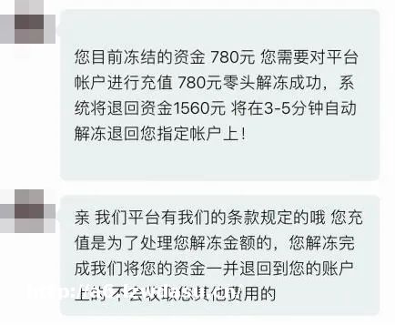 小王联系平台,对方称因其汇款时没带零头导致账户被冻结,需要缴纳780元解冻费。