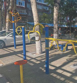 海淀区的魏公村南区、车道沟10号院南区,以及西城区的红莲小区、丰台区的玉林东里三区等老小区都是如此。魏公村南区有一处用铁皮围起的不足100平方米的简易健身器材区,放置了两个乒乓球台和几件健身器材。这片区域紧邻20号楼,中间只有2米左右的通行距离,很难再扩大范围添置新的活动设施。车道沟10号院南区则在一个三角形区域挤下了七八件健身器材,与电动车棚紧挨在一起。居民说:“空间太小了,遛弯儿都得躲着车,连老人都不爱在小区里锻炼,宁愿跑远点儿去公园。”红莲中里、红莲南里小区居民楼间几乎只有一小片绿地,其余空间用来停放车辆。玉林东里三区大大小小的空间挤满了私家车,只有11号楼旁腾出了一小片空间,垃圾箱、停车位和健身器材混在一起。