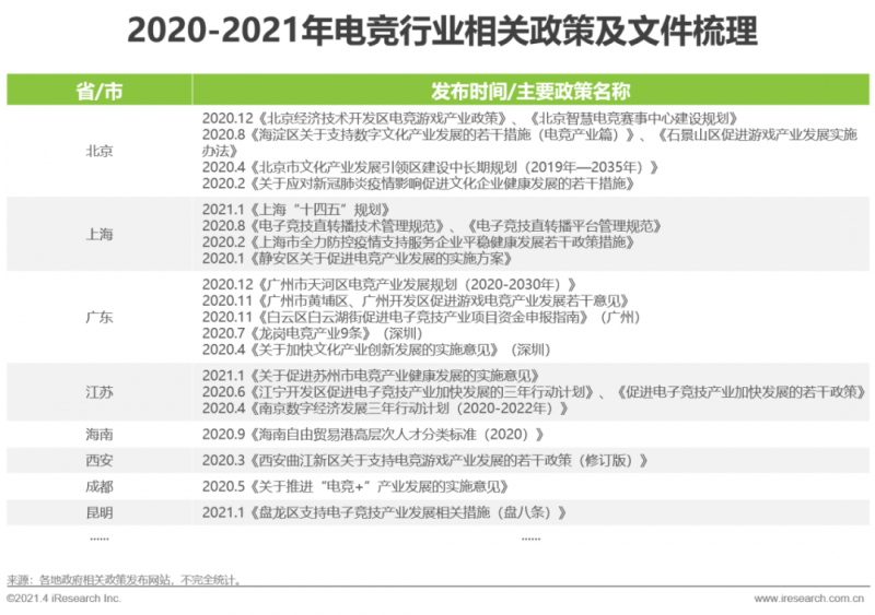 电竞行业的快速发展也得益于政策的扶持。电竞成为杭州亚运会正式项目、国际奥委会首次举办奥林匹克虚拟系列赛。