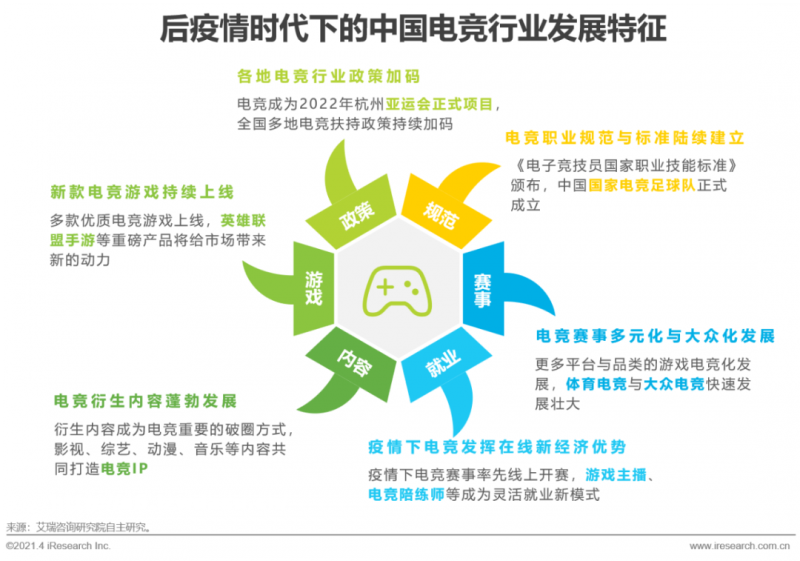 此外,技术的创新为电竞产业发展提供新的动力,5G、AI、VR、AR、MR等技术与电竞的结合将带来新的契机,