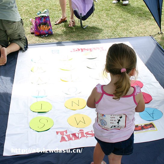 扭扭乐不管在那里都是好玩的,但把它带到户外去会让这个游戏更有意思。也许是因为有很多人在旁边看着你,也许是户外的空气让你更加忘乎所以,不管怎样,这是一个大人和小孩都会喜爱的游戏。