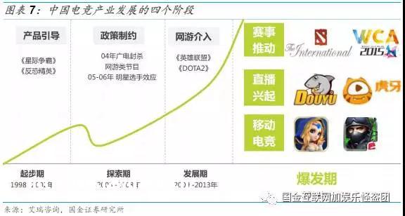 我们认为,电竞赛事经历了起步期、发展期、深化期和爆发期四个过程,在移动电竞爆发之后,第三方和**方赛事都将迎来长足的发展。第三方和**方并不矛盾,不存在谁打败谁的问题。