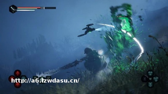 而且战斗部分格外有意思,剑、长矛和斧头等一系列武器装备,搭配技能组合,打起来又怪又爽。举个例子:战斗中能举着大剑御空冲锋,还能被无人机带起来持剑下砸,剑气式的远程攻击也没有缺席......这种冷兵器+魔法+科技的组合,市面上着实不太常见,战斗流程想必会很新颖。