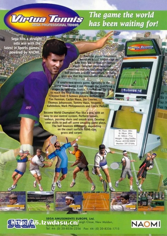 《VR网球》在街机厅里迅速风靡,由于采用了NAOMI基板,移植到DC主机自然是顺理成章,之后还推出了PC版,还有训练模式等新玩法,很快就把这个全新的网球游戏普及到全平台,从此该系列成为世嘉新的**之一。2001年推出的街机版2**始加入女选手,DC版封面正是当年横扫天下的威廉姆斯姐妹,如今二十年过去了,妹妹刚宣布退役,姐姐仍然在坚守。之后由于世嘉宣布推出家用机硬件市场,转型为纯粹第三方软件商,《VR网球2》也登陆PS2主机,从此开始成为面向全平台的网球游戏。街机版在2006年的《VR网球3》后便不再推出,系列重心放在家用主机平台,2011年1月发售的《VR网球4》是最新一部作品。