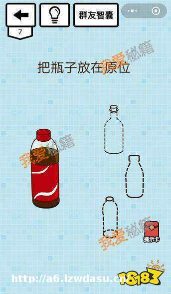 正确答案:将瓶子移动到题目中“原位”两个字上!