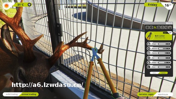在动物园模拟器游戏里,你的首要任务之一将是把动物园恢复如初。你必须要投入大量精力,为你未来要养的动物们清理不易注意到的小巷和被破坏的地方。做这些工作,你需要用到许多工具,诸如电焊机和高压水枪等。请记住 - 辛勤的工作后随之而来的将是一群快乐的游客!