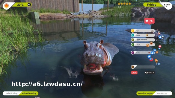 在动物园模拟器游戏里,你还需要时刻注意动物们的健康状况,它们会以和平、健康及行动来回报你。按时给它们喂食、关心它们,并特别注意保证它们的安全 - 动物们喜欢咬他们的鼻子,只要有机会就会咬上一口! 正因为如此,动物才更有可能向游客展示自己,赢得他们的同情。