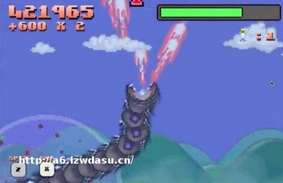 这是一款于2010年秋天登录ios平台的像素风横版动作小品,游戏中玩家可以控制一条刚刚在地下被孵化出的,但已经是相当巨大了的“死亡蠕虫”,由单方面的**开始破坏车辆,吞食人畜,最终……好像也没什么特殊的目的,但至少由只有几小节身子的幼虫,成长为上触天顶,下及黄泉的戈壁之王吧。