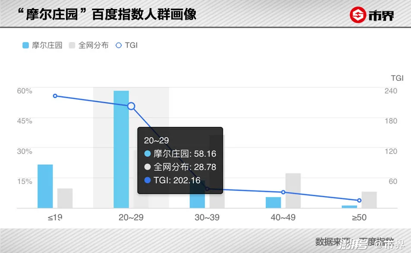 以百度指数来观察,对“摩尔庄园”感兴趣的人群主要分布在20岁到29岁,占比58%。只要玩家主体不再是未成年人,那么受到的约束就不大。同时有调查显示,这类人群在游戏中的付费能力更强。