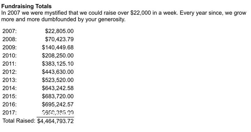 不过《沙漠巴士》时至今日还被人提起,并不只是因为它的无聊。实际上在它背后,有个持续了多年的慈善募捐活动——「通往希望的沙漠巴士」(Desert Bus For Hope)。活动组织者轮流驾驶沙漠巴士,捐款不停,游戏就继续。于是最无聊的《沙漠巴士》变成了非常有意义的慈善活动,至今这个活动已经为慈善机构筹集了超过 400 万美元。