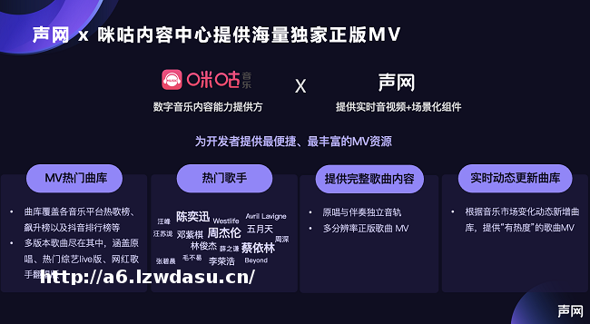 与** K 歌房不同的是,Meta*** 解决方案提供了 3D 场景,用户无需再紧盯当前播放歌曲、歌词的手机屏幕。在百变风格的 3D 场景中,如跳舞、打call 等,轻松让气氛 high 起来。同时,在 3D 空间音频的加持下,用户能尽享“声”临其境的 K 歌体验。企业和开发者无需担心 MV 曲库质量,Meta*** 解决方案 MV 曲库资源已覆盖各音乐平台热歌榜、飙升榜以及排行榜,并提供多分辨率歌曲 MV,**可达1080p。