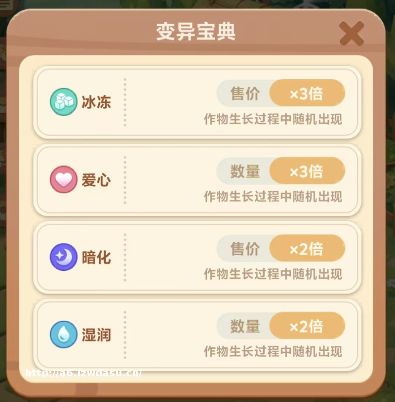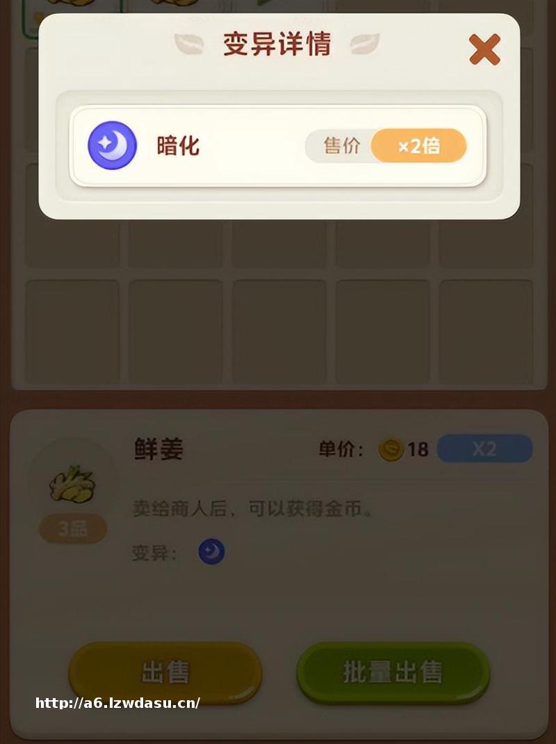 比如作物生长中有概率触发变异词条,一块普通生姜可能随机触发“暗化”形态,售价直接翻倍。变异随机、无需培育,出现与否全凭运气。