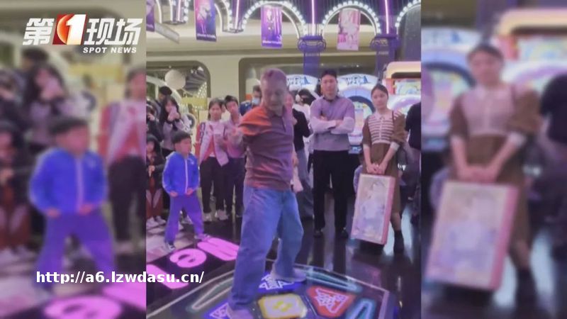 一位白发老人在跳舞机前活力四射