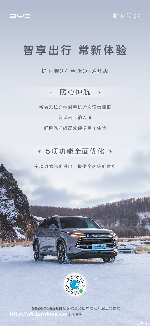OTA涉及车型:护卫舰07(参数|询价)OTA内容:无线充电手机遗忘播报等OTA推送时间:1月1日