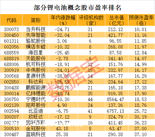 有望成为反弹龙头。5家以上机构评级个股中,有19只个股上半年净利同比增长,金冠股份、国轩高科、比亚迪、宁德时代等个股上半年净利同比增速均超****。较低的估值也有望支撑公司**反弹。当升科技、先导智能、骆驼股份等14股机构一致预测今年市盈率低于20倍。