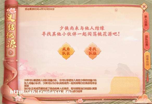 新服前7天,等级≥30级的少侠,可以与其他少侠一起组成结缘小队。