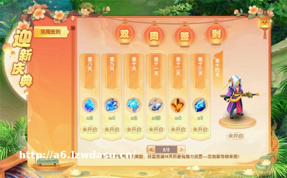 少侠们在迎新庆典-双周签到,可领取双周签到奖励奖。签到一周可获得霸气坐骑苍灵,签满14天还能免费领取超实用珍稀灵兽——盲剑客!
