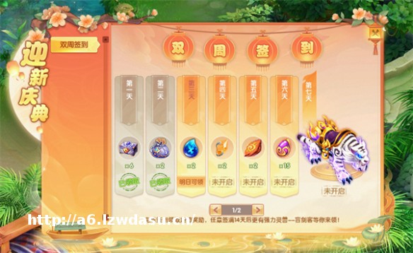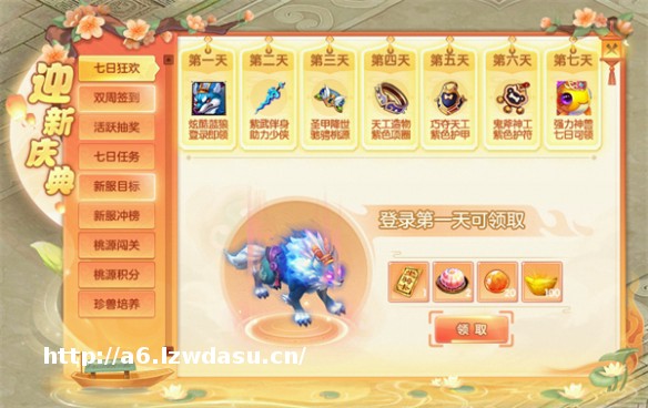 少侠们在迎新庆典-七日狂欢,可领取签到奖励,登录即有炫酷蓝狼坐骑,连续签到七天更可领取强力神兽锦仙子!