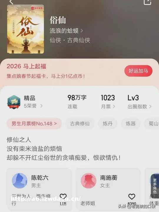 养的牛是邪神,仙子妻子消失了,有随时要命的命格,有金手指,这个开*,悬念有了,感情的钩子也有了。
