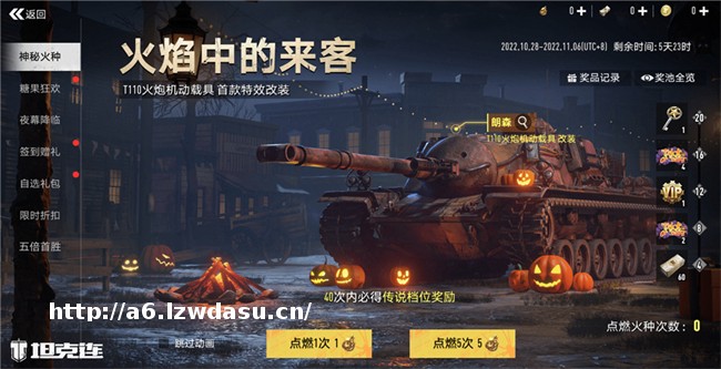 既然夜幕太暗,那就用篝火把它点亮!活动期间,消耗代币点燃神秘火种,即可获取丰富的资源奖励,更有机会抽中游戏内****改装T110火炮机动载具-朗森,丰富的万圣节元素将成为战场上的焦点。累计点燃火种达一定次数后,还可额外解锁点券、高级会员、节日风格贴花和****等好礼。