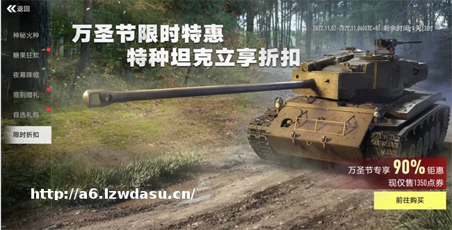 《坦克连》还为玩家们准备了万圣节专属折扣——即日起至10月30日,M系VI级重坦M6A2E1将以90%钜惠折扣登场,**同级重坦的防护力、雄厚的生命值和不俗的进攻能力等你前来领略;同为M系VI级重坦,有着**潘兴美誉的T26E4则将于12月2日至6日登场,同样开启90%限时钜惠,**的防护,出色的**,**的射速和卓越的山地战能力,你岂能错过?!