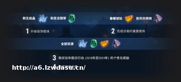 · 活动货币:共有4种类型的资源——新生岩晶、圣洁翡翠、春暖琥珀、天外陨铁。活动中具有数个获取资源的途径: