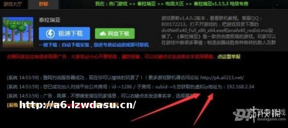 通过游侠对战平台《泰拉瑞亚》房间进入游戏。