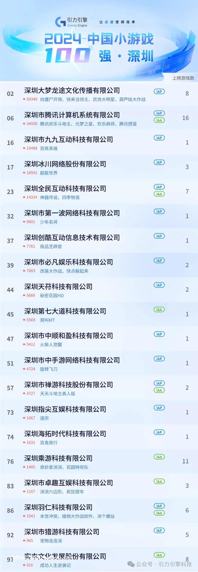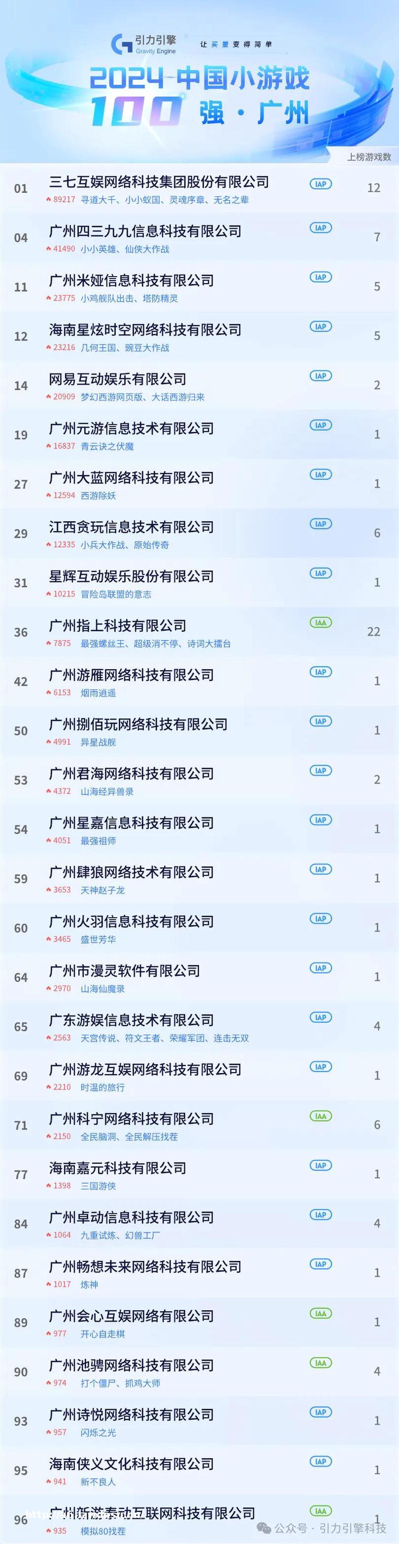 恰巧,受小游戏市场大盘,该榜单不仅对当下***级的小游戏厂商进行了排名划分,同时还对各自的城市地区和产品类型进行了归纳整理。