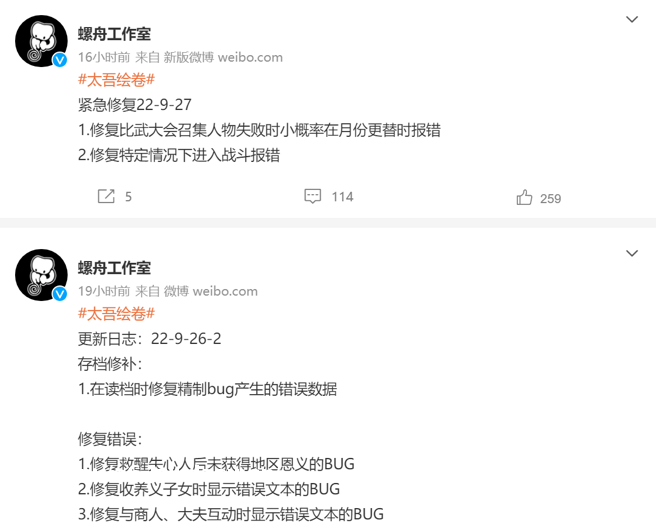 所以现在玩家群体对《太吾绘卷》的讨论一般有两种声音:一种担忧开发团队的身体状况希望他们不要加班加点到进医院,另一种则是疑问,为什么封闭两年后螺舟会掏出又一个半成品?为什么不更早开启测试来修改恶*BUG,而是在10月初才开始测试且*限在500人范围?为什么500人测试后,21日发布的版本仍然有大量直接导致游戏没办法玩下去的恶*BUG,自己做的游戏自己没玩过吗?
