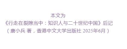 本文为《行走在裂隙当中:知识人与二十世纪中国》(唐小兵 著,香港中文大学出版社 2025年10月)后记。