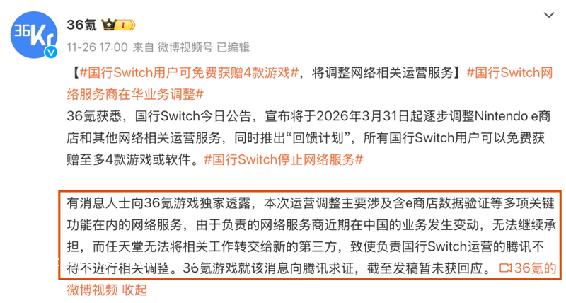 国行Switch停服,或许从一开始就不在腾讯的意料之外,也不会因停服而终止。