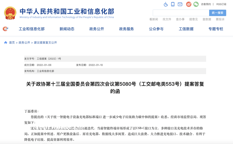 工信部表示,当前智能终端市场形成了以 USB-C 接口为主,多种接口及充电技术并存的格*。正如提案中所述,用户更换设备后,造成巨大浪费。大力推进充电接口、技术融合,有利于降低电子垃圾,提高资源利用效率。