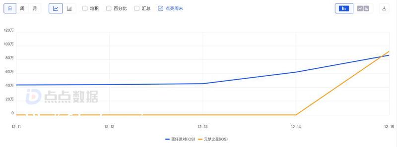 红星资本*注意到,《元梦之星》上线不过3天,11月8日iOS端预估收入(已扣除平台分成),《元梦之星》首日92.13万美元,略超《蛋仔派对》的86.46万美元。《蛋仔派对》10月14日为23.8万次,略胜于《元梦之星》的22.3万次。