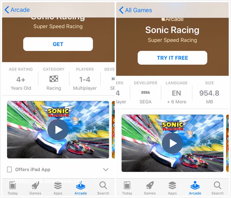 不同于 App Store 中的游戏项目,苹果在 Apple Arcade 中每款游戏详情页面都给出了建议年龄、游戏类型、玩家人数、开发商、语言、容量等信息,这些也都能体现出苹果在细节上的用心。